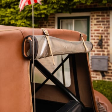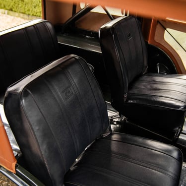 Une capote marron ajoute une touche agréable. L'intérieur classique en vinyle noir est également en très bon état et ne présente que de légers signes d'utilisation.