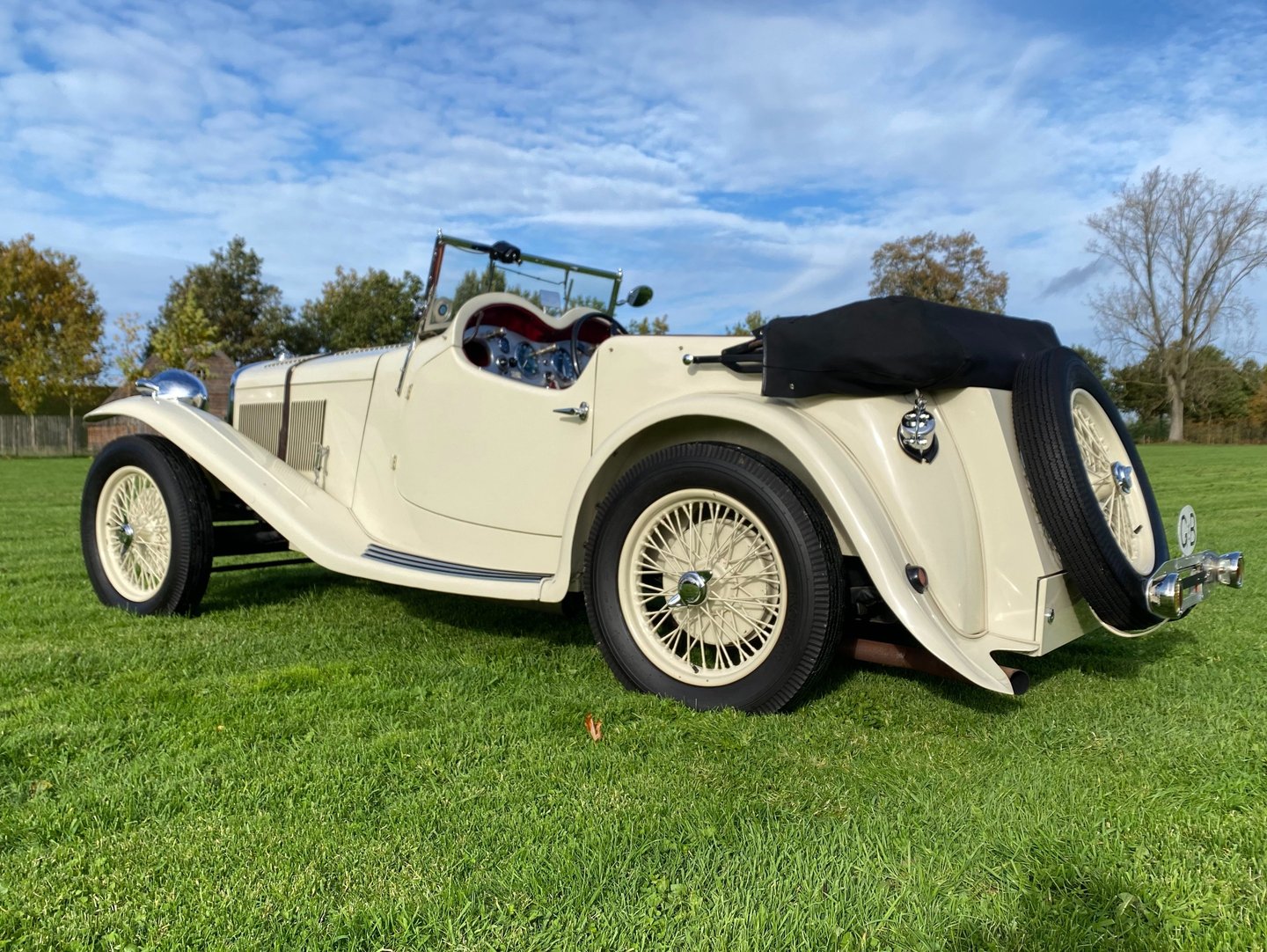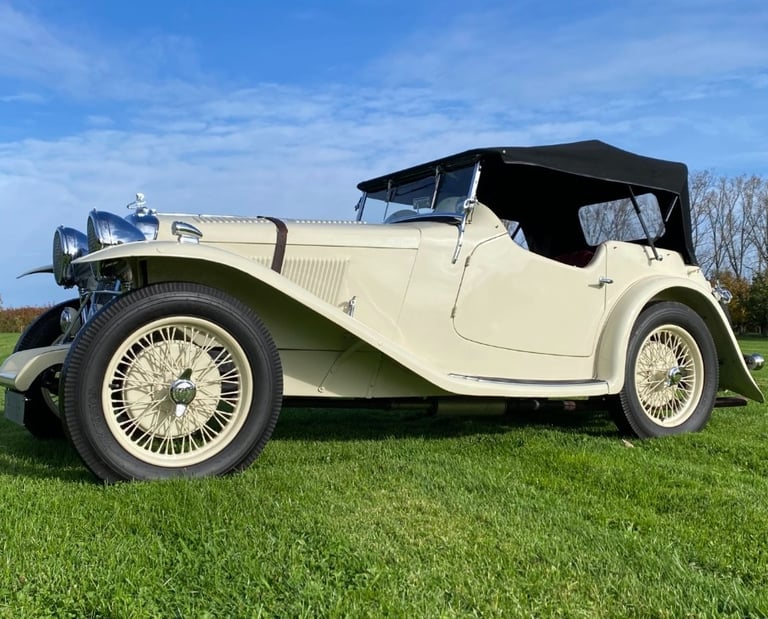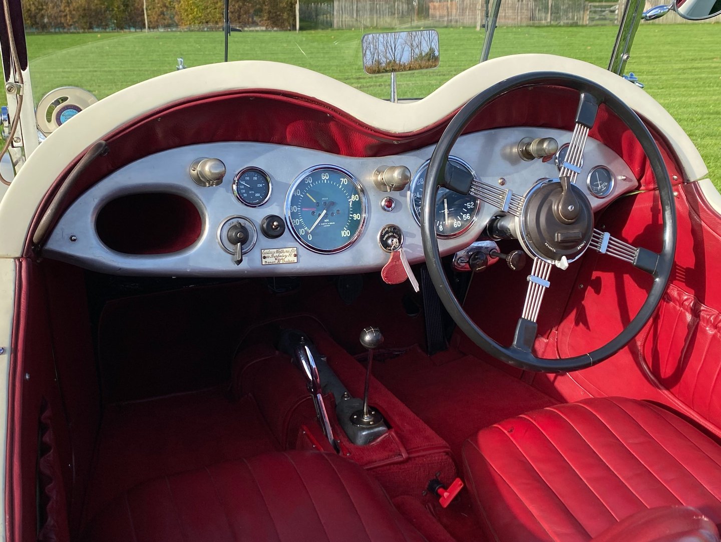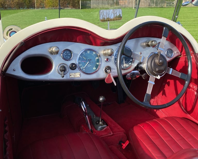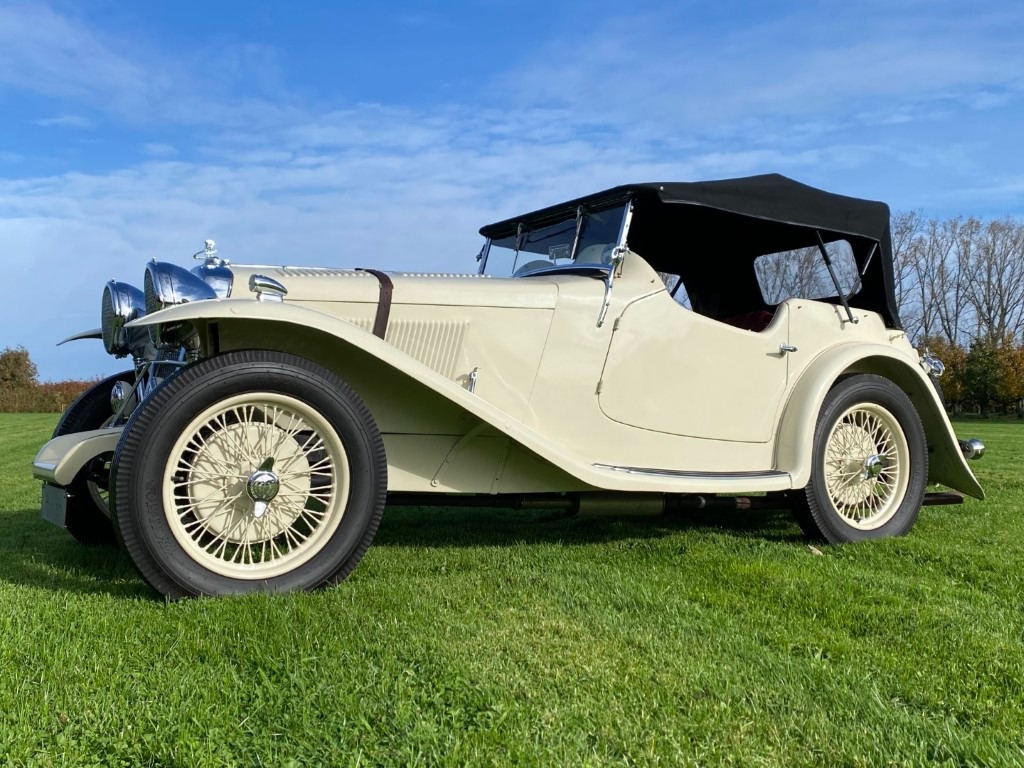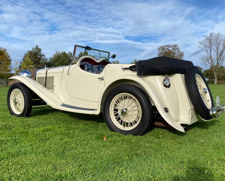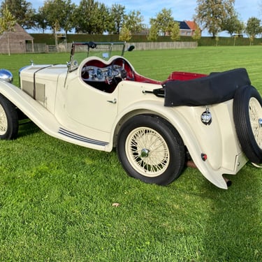 Cette magnifique Wolseley Hornet a commencé sa vie en tant que berline fermée. En 2009, la voiture a été entièrement restaurée en Allemagne par un spécialiste de la marque. Pendant la restauration, la carrosserie de la berline a été remplacée par une ancienne carrosserie « Daytona » d'Eustace Watkins (Londres, Royaume-Uni), qui a également été entièrement restaurée. La Hornet est propulsée par le moteur six cylindres en ligne d'origine (reconstruit) de 1378 cm3 qui fonctionne très bien et qui est couplé à une boîte de vitesses manuelle à quatre rapports. Cette magnifique voiture spéciale est dans un état sublime et vous offre une expérience de conduite d'avant-guerre exceptionnelle ! Le pare-brise peut être rabattu. Il s'agit d'une rare Wolseley Hornet à six cylindres et d'une spéciale sublimement construite !
